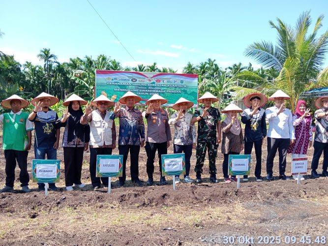 Bengkalis, Haluanberantas.com – Upaya memperkuat ketahanan pangan nasional kian digencarkan. Polsek Bengkalis bersama Pemerintah Kecamatan Bengkalis dan Pemerintah Desa Senggoro melaksanakan Program Penanaman Jagung Serentak Kuartal V di lahan seluas dua hektare, berlokasi di Gang Tanah Gambut, Jalan Bantan, Desa Senggoro, Kamis (30/10/2025).