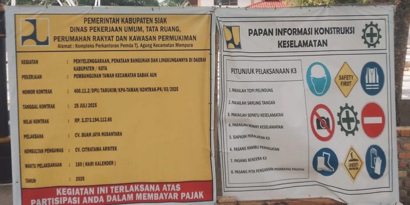 SIAK | HaluanBerantas.com – Dewan Pimpinan Pusat Lembaga Swadaya Masyarakat Barisan Suara Rakyat Bersatu (DPP LSM BERANTAS) melontarkan kritik pedas terhadap proyek pembangunan Taman Kecamatan Sabak Auh yang menelan anggaran lebih dari Rp3,3 miliar. Proyek itu dinilai tak masuk akal dikerjakan saat keuangan Kabupaten Siak masih morat-marit akibat tunda bayar sejak 2024 hingga kini.