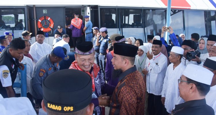 174 JCH Kloter 13 Dilapaskan Bupati Bengkalis di Pelabuhan BSL Menggunakan Ferry Ruby Of Dumai